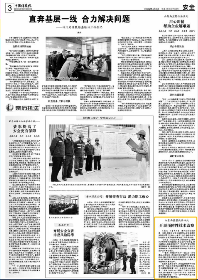 在技术监察过程中,该处监察员针对1处煤矿在一准备工作面邻近位置布置掘进作业,责令调整采掘部署;针对1处煤矿在2024年布置7个采煤工作面、42个掘进工作面的不合理安排,责令重新制订生产计划;针对3处煤矿未绘制采掘接续图、“一矿一册”中有关内容不翔实等问题,责令重新报送。