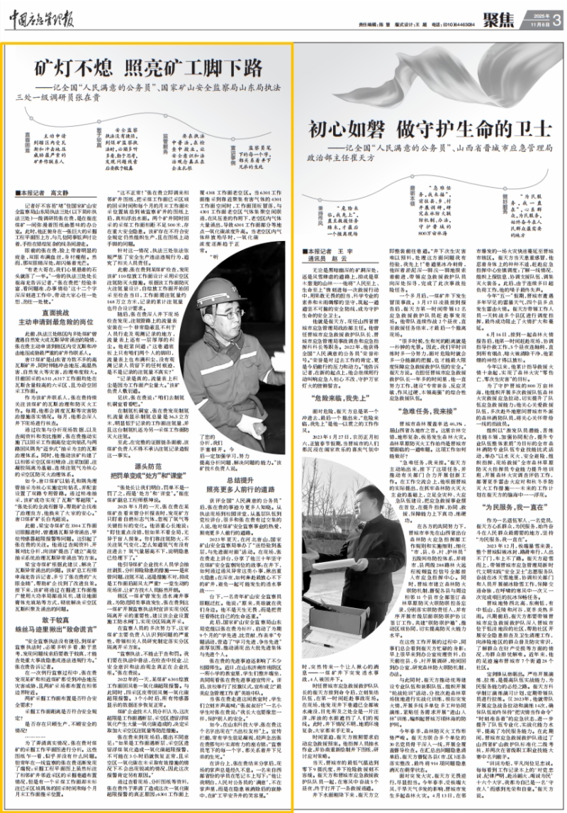 获评全国“人民满意的公务员”后,张在贵的事迹为更多人知晓。从执法现场到校园课堂,从基层队伍到党校讲台,很多和张在贵有过交集的人说,他对煤矿安全监察事业的热爱,照亮更多人前行的道路。